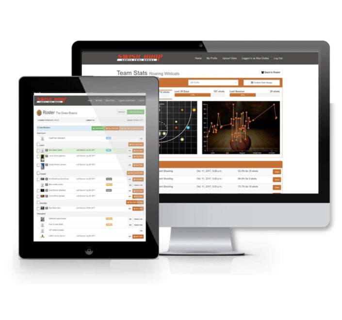 The Swish Hoop® Coach's App is a web application that allows trainers and coaches to remotely manage and track their players from any phone, tablet, or computer. They may review shooting stats and videos of players no matter where they practice. Within the Coach's App, trainers and coaches may assemble their client rosters, create custom drills, workouts, and leaderboards, assign practices, preset plans for practices, monitor assignment completions, review automatically broken-down videos of practices, comment and telestrate on player videos, review week-by-week player rankings within the team and much more.